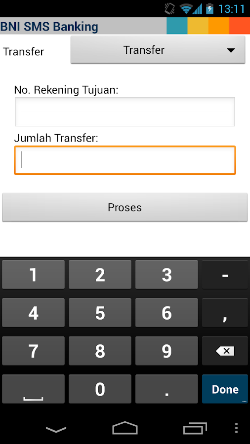 BNI SMS Banking Menu is an SMS-jacket* application for Smartphone Platform. BNI SMS Banking Menu allows you to conduct every transaction simply by choosing the transaction menu such as cellular phone reload, bill payment, credit card payment, transfer to another BNI account or interbank fund transfer.
