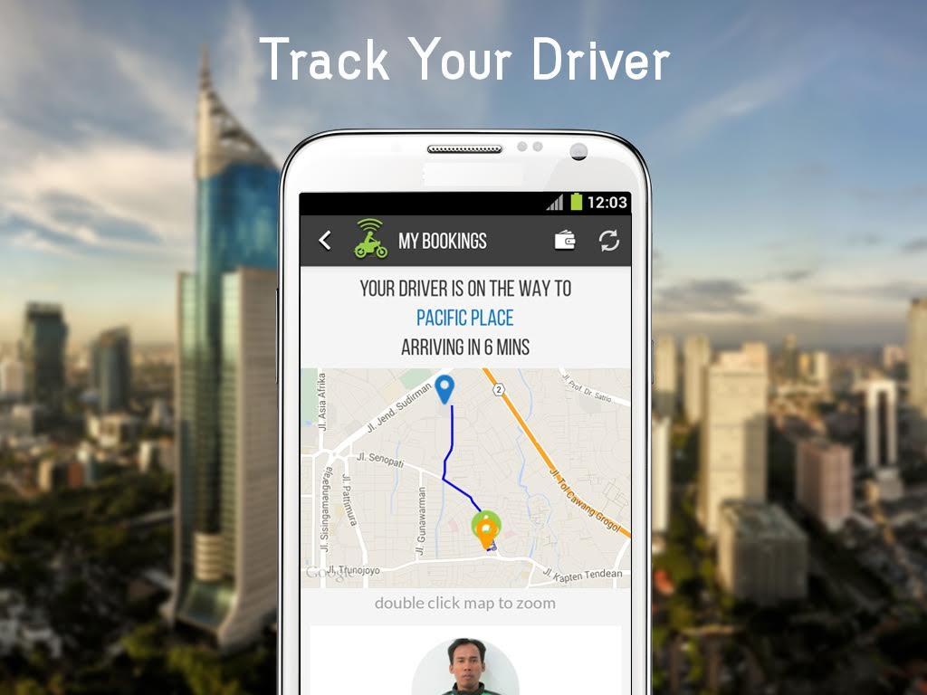 Kita bisa mengetahui letak ojek terdekat dengan lokasi kamu yang dipesan dengan menggunakan GPS dan menghubunginya langsung. Bahkan, kita bisa tahu profil sopir ojek yang akan menjemput, nama dan wajahnya. Semua hal tersebut akan muncul ketika ada sopir ojek merespon permintaan kita. Jadi, nggak usah khawatir kita bakalan salah menaiki ojek. Selain itu, kita juga akan mendapatkan penutup rambut dan masker ketika menggunakan jasa ini.