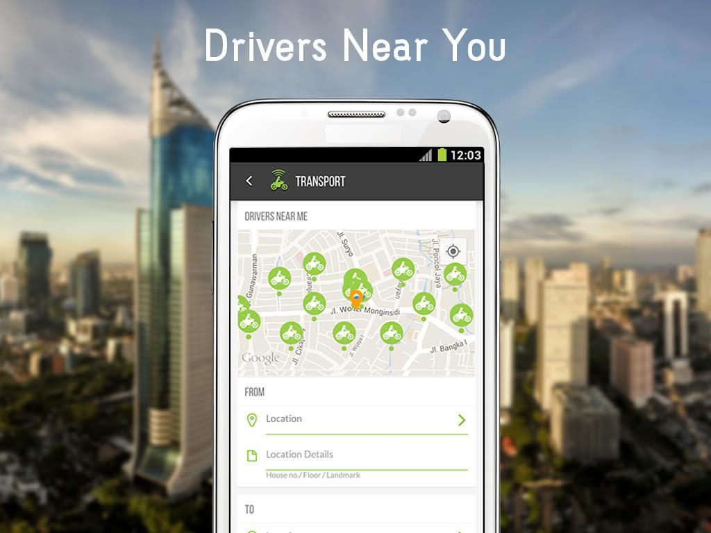 Dengan menggunakan GO-JEK app; kamu dapat memesan GO-JEK Driver untuk mengakses semua layanan kami. Masukan alamat kamu untuk mengetahui biaya penggunaan layanan. Gunakan layanan ‘Use my location’ untuk mengarahkan Driver ke tempat kamu berada.